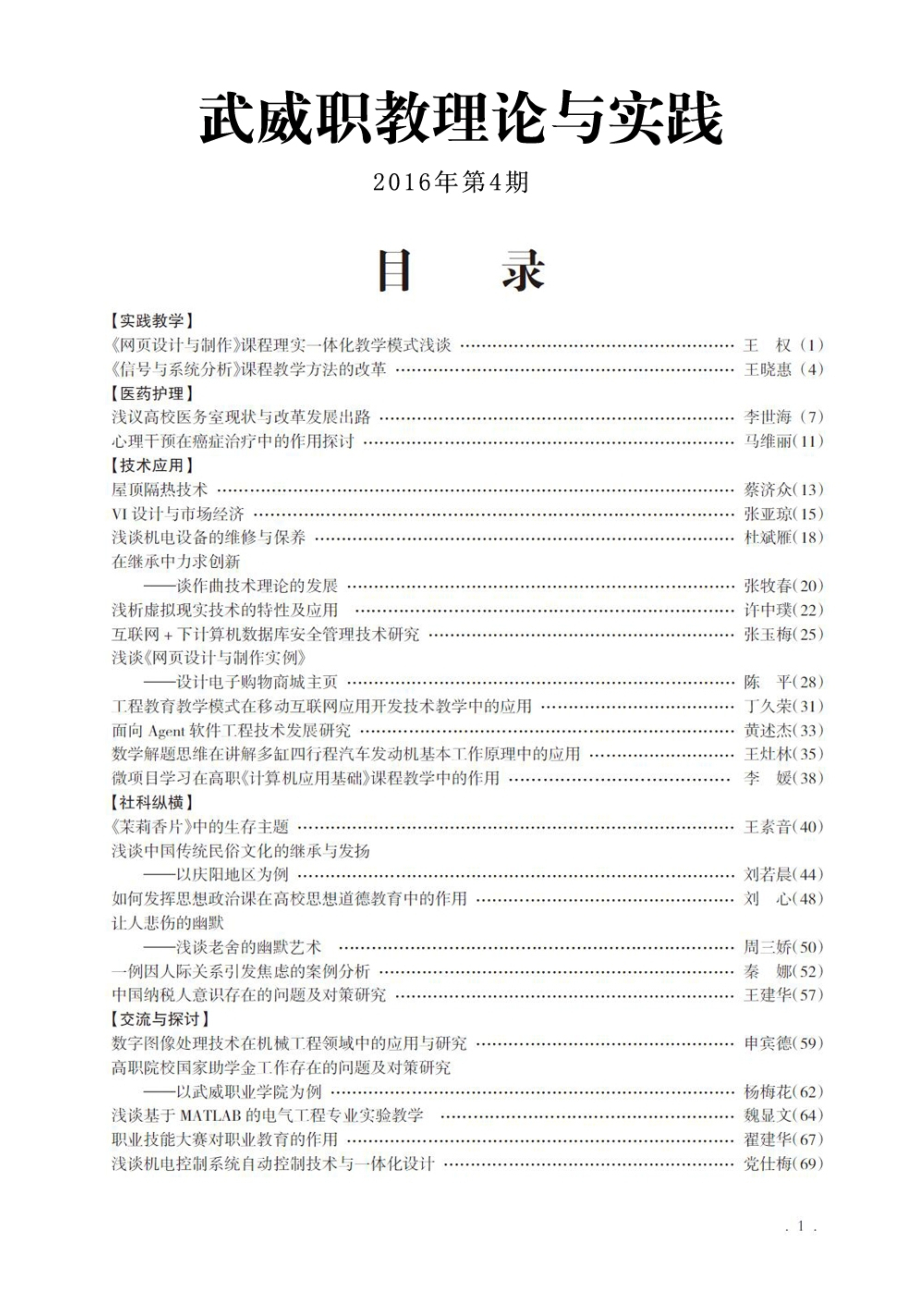 2016年第4期《武威職教理論與實(shí)踐》