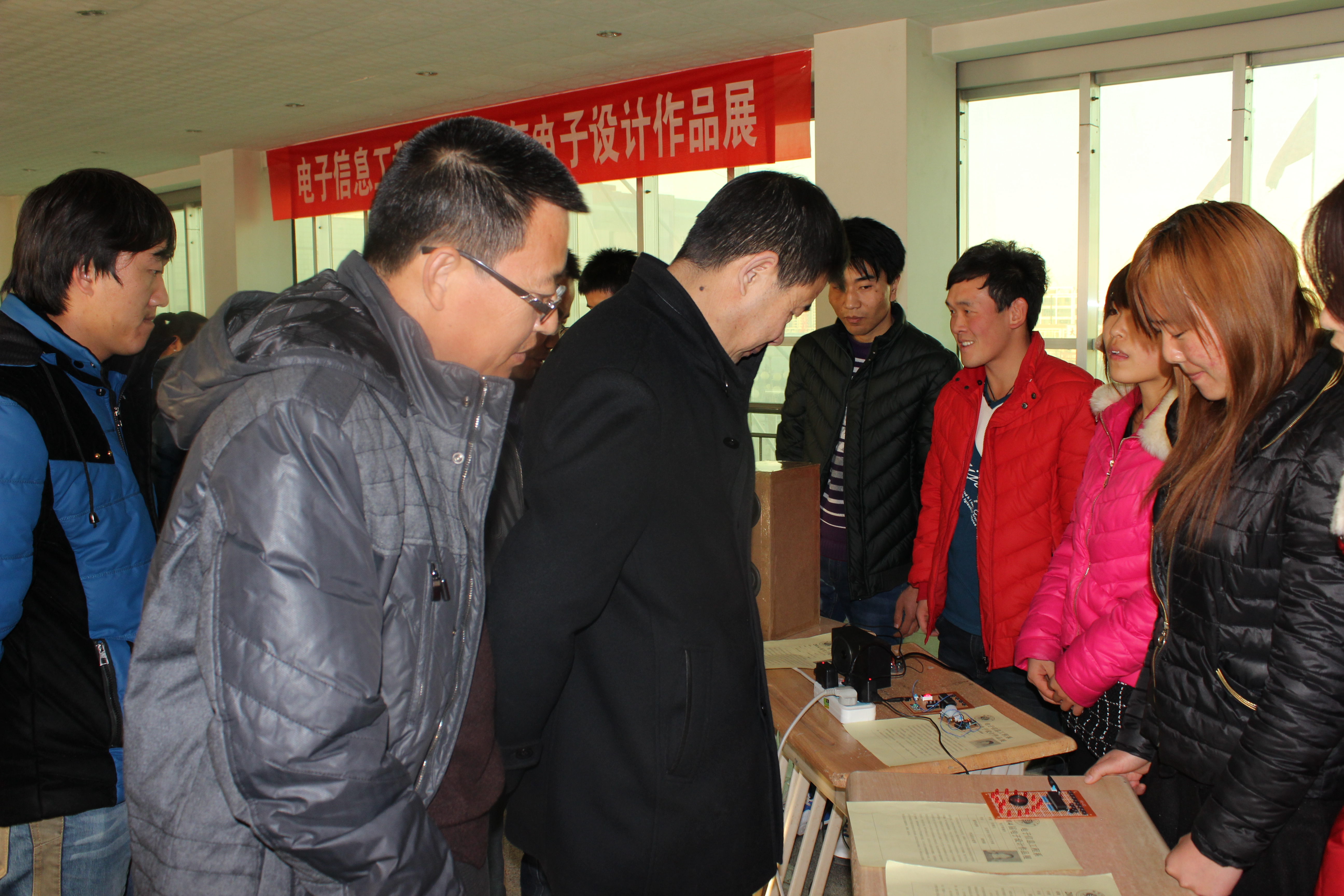 為豐富大學生課余生活,使更多的同學了解電子,走進電子,培養(yǎng)學生對電子產品的興趣及實際操作能力,近日,我系成功舉辦電子制作與設計作品展。學院翟存祥副院長,教務處魏潤明處長,電信系蔣偉主任、張伯成書記蒞臨展區(qū)詳細詢問了電子作品設計與制作情況。