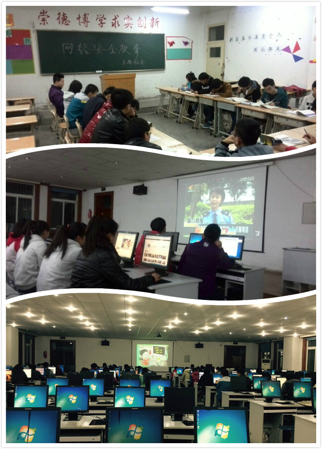 電信系團總支組織各班團支部于2014年11月24日至30日,深入開展了以“網(wǎng)絡安全宣傳教育”為主題的活動。宣傳周期間,組織各班觀看了與網(wǎng)絡安全有關的紀錄片及電影,播放中央網(wǎng)信辦制作的“網(wǎng)絡安全在我身邊”公益短片等視頻資料;通過QQ、微博、微信等多種網(wǎng)絡傳播渠道,宣傳網(wǎng)絡安全知識;召開“網(wǎng)絡安全教育”主題班會,學生討論并舉例說明大家在網(wǎng)絡中親身經(jīng)歷過的網(wǎng)絡危害,并分析其原因,使同學們了解更多的網(wǎng)絡詐騙形式。