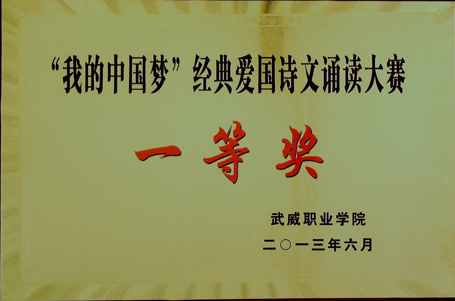 “我的中國(guó)夢(mèng)”經(jīng)典愛(ài)國(guó)詩(shī)文誦讀大賽一等獎(jiǎng)
