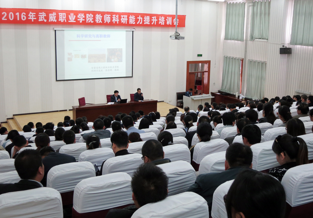 為進(jìn)一步推進(jìn)我院科研工作,營造科研氛圍,提高教師科研能力,滿足教師對(duì)科研工作的需求,4月20日下午,學(xué)院科研處特邀甘肅畜牧工程職業(yè)技術(shù)學(xué)院教授、科研開發(fā)處處長張登輝在正德廳作了題為“科學(xué)研究與高職教師”為主題的培訓(xùn)講座。學(xué)院副院長翟存祥主持會(huì)議,全院260多名教師參加了此次培訓(xùn)。