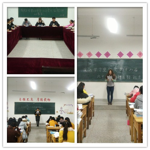 為深入學(xué)習(xí)宣傳十八屆六中全會(huì)精神,引導(dǎo)廣大團(tuán)員青年準(zhǔn)確把握全會(huì)的精神實(shí)質(zhì)和深刻內(nèi)涵,藥學(xué)系團(tuán)總支結(jié)合“兩學(xué)一做”學(xué)習(xí)教育和貫徹落實(shí)武威市第四次黨代會(huì)精神,于12月7日晚,在明遠(yuǎn)樓組織各班團(tuán)支部開(kāi)展了學(xué)習(xí)黨的十八屆六中全會(huì)精神主題團(tuán)會(huì)。團(tuán)會(huì)由各班團(tuán)支部書(shū)記主持,會(huì)議傳達(dá)了十八屆六中全會(huì)精神和武威市第四次黨代會(huì)精神,領(lǐng)學(xué)了《中國(guó)共產(chǎn)黨第十八屆中央委員會(huì)第六次全體會(huì)議公報(bào)》內(nèi)容。