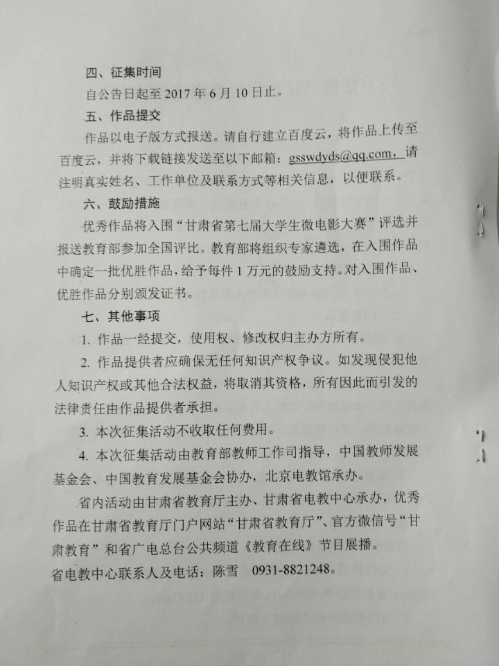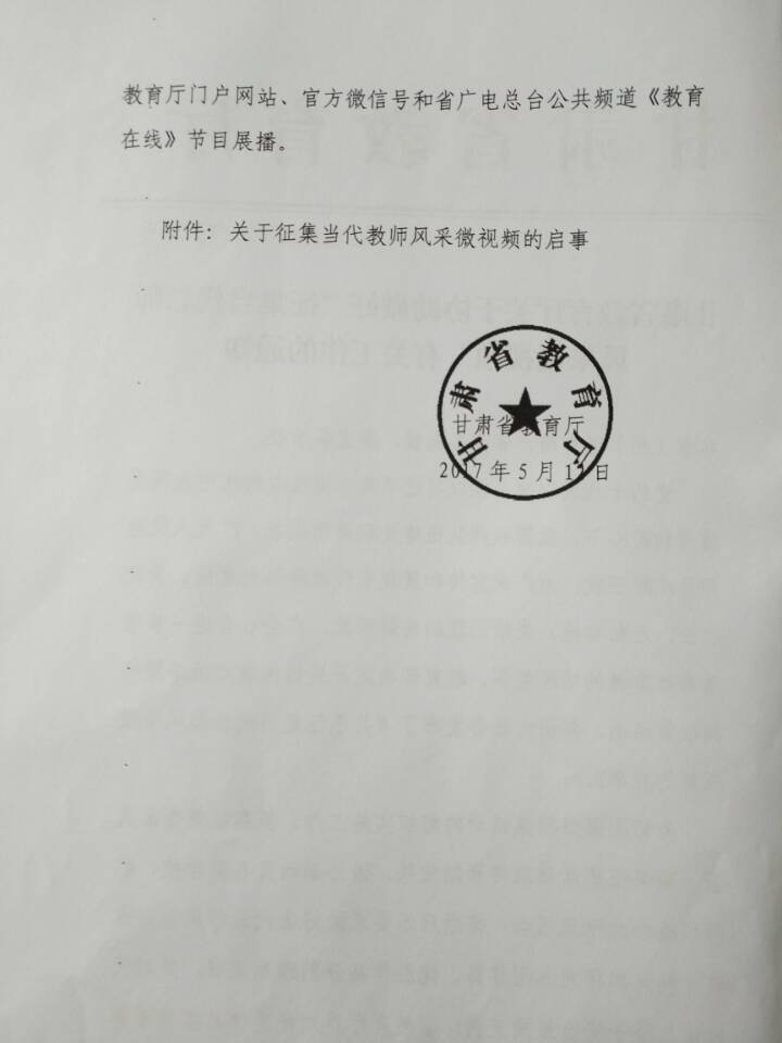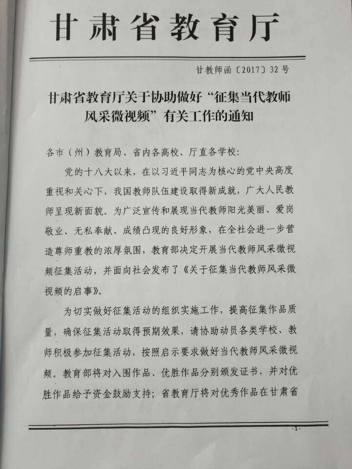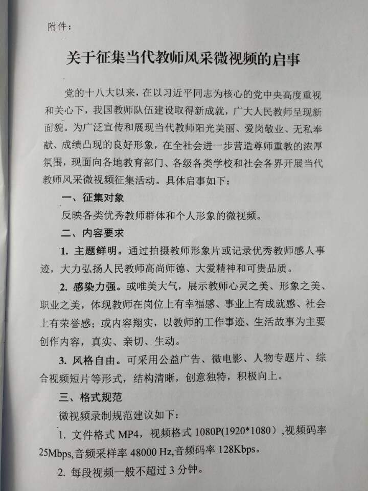 現(xiàn)將省教育廳關(guān)于協(xié)助做好“征集當(dāng)代教師風(fēng)采微視頻”有關(guān)工作的通知上傳至學(xué)院網(wǎng)站,請你們認(rèn)真組織教職工踴躍參與此項(xiàng)工作,有參加意向的教職工請根據(jù)要求做好微視頻于6月8日前報(bào)送至組織人事處。