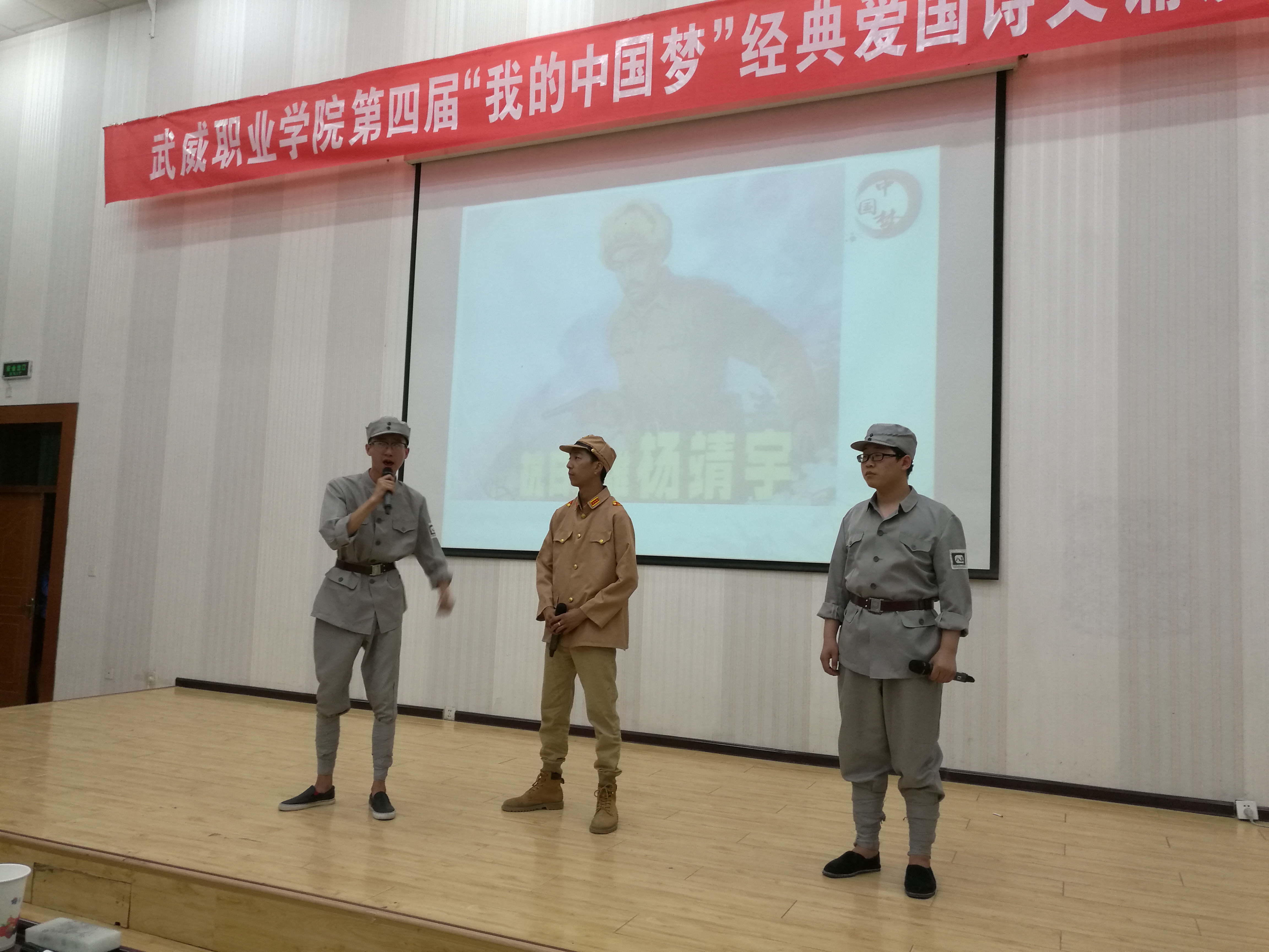 為紀(jì)念建團(tuán)95周年,深入貫徹落實(shí)高校思想政治工作會(huì)議精神, 6月8日晚,院團(tuán)委在正德廳舉辦學(xué)院第四屆“我的中國(guó)夢(mèng)”經(jīng)典愛(ài)國(guó)詩(shī)文誦讀大賽決賽。學(xué)院副院長(zhǎng)田迎春出席活動(dòng)并為獲獎(jiǎng)代表隊(duì)頒獎(jiǎng),學(xué)生工作處處長(zhǎng)王守云、工會(huì)主席金玉龍、辦公室副主任徐永生、計(jì)劃財(cái)務(wù)處副處長(zhǎng)劉文寶及宣傳統(tǒng)戰(zhàn)部、教務(wù)處、院團(tuán)委教師代表?yè)?dān)任評(píng)委,300多名師生觀看了比賽。