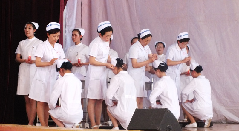 為繼承和弘揚(yáng)南丁格爾精神,積極推動(dòng)護(hù)理專業(yè)人才建設(shè)和職業(yè)內(nèi)涵塑造,展示我院護(hù)理專業(yè)師生風(fēng)采,在第106個(gè)國際護(hù)士節(jié)來臨之際,學(xué)院于5月12日下午在大禮堂隆重舉辦了慶祝國際護(hù)士節(jié)活動(dòng),武威市衛(wèi)生計(jì)生委副主任潘玉華、學(xué)院黨委副書記趙明、紀(jì)委書記張富國、副院長王永緒、直屬附屬醫(yī)院護(hù)理部主任、相關(guān)處室領(lǐng)導(dǎo)及護(hù)理系全體師生1200余人參與了本次活動(dòng)?;顒?dòng)包括護(hù)士授帽儀式,護(hù)理實(shí)踐技能操作表演,第四屆護(hù)理技能大賽頒獎(jiǎng),慶祝“5.12”護(hù)士節(jié)文藝演出等內(nèi)容。