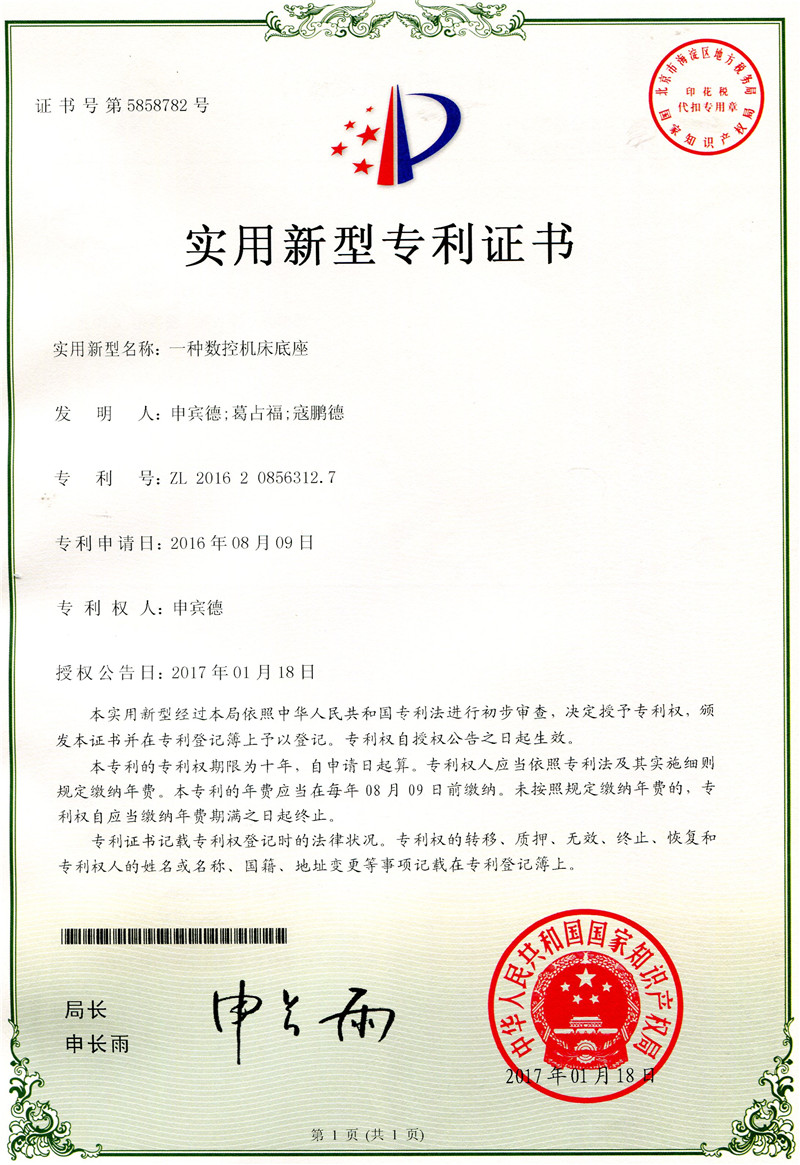 科研成果---實用新型專利:一種數(shù)控機(jī)床底座