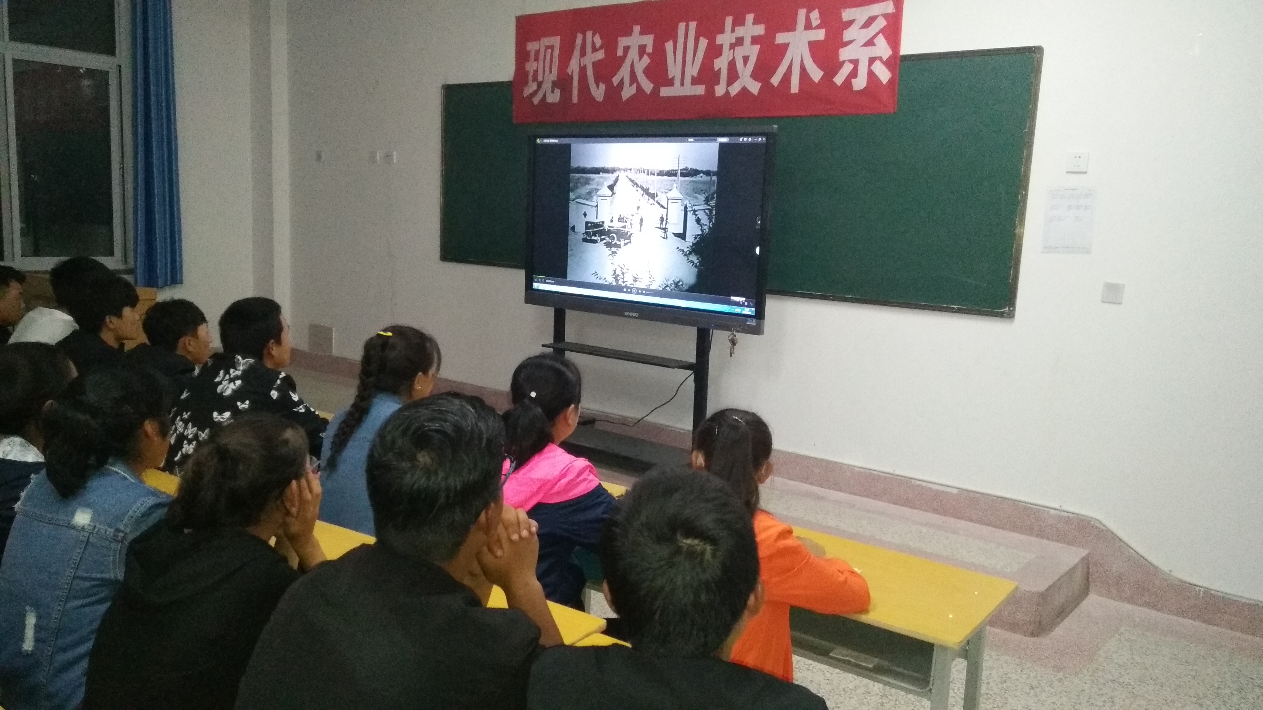 9月18日晚,現(xiàn)代農(nóng)業(yè)技術(shù)系團學(xué)會組織全體學(xué)生在行樹樓教學(xué)區(qū)301、303多媒體教室觀看《陽光下的罪惡》、《血肉長城》、《正義千秋》等視頻,沉痛紀念“九一八事變”86周年。