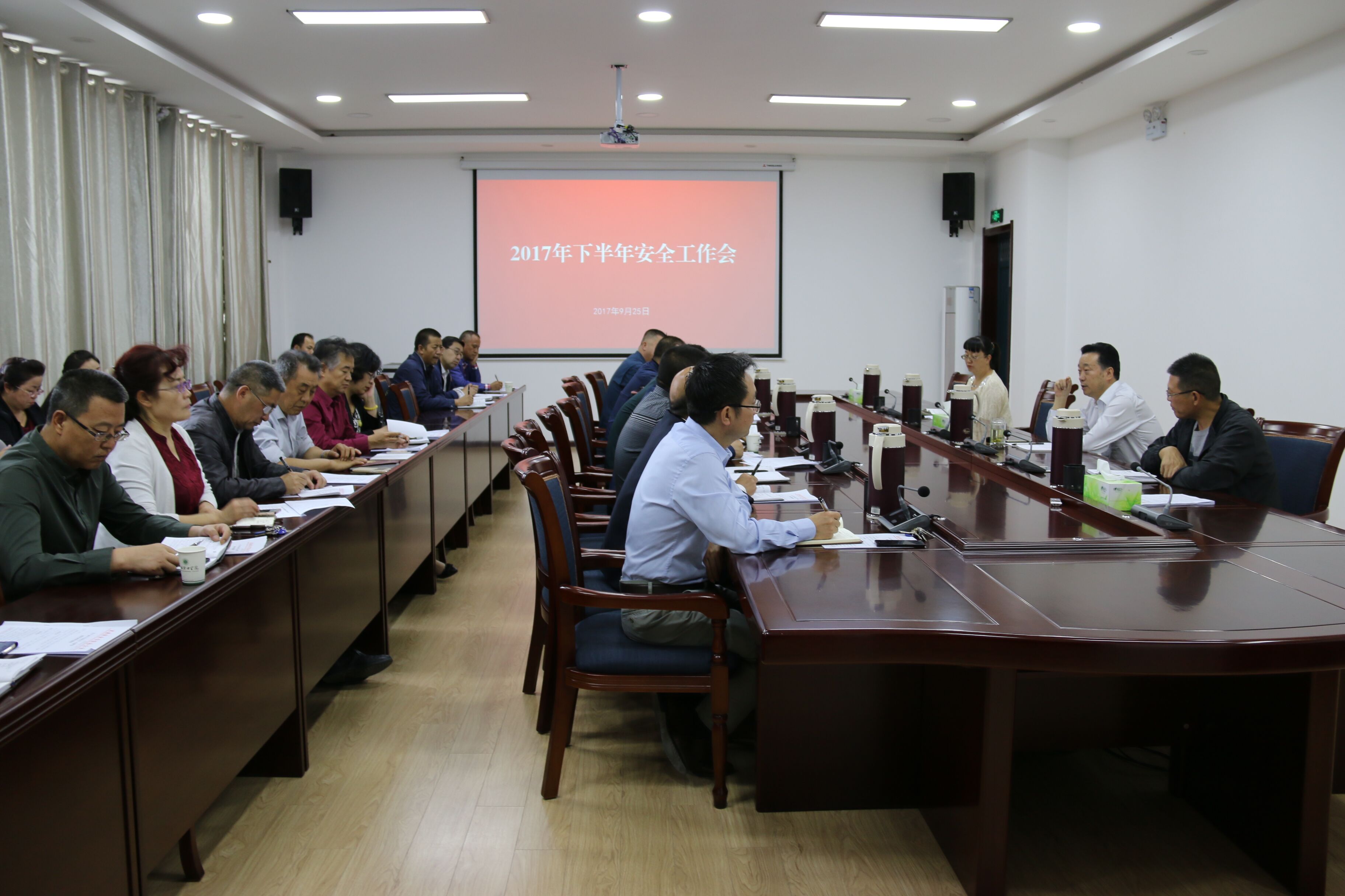9月25日下午,學院召開2017年下半年安全工作會議,院長宗瑞謙,副院長王永緒、田迎春出席會議,學院各部門、單位負責同志參加會議。