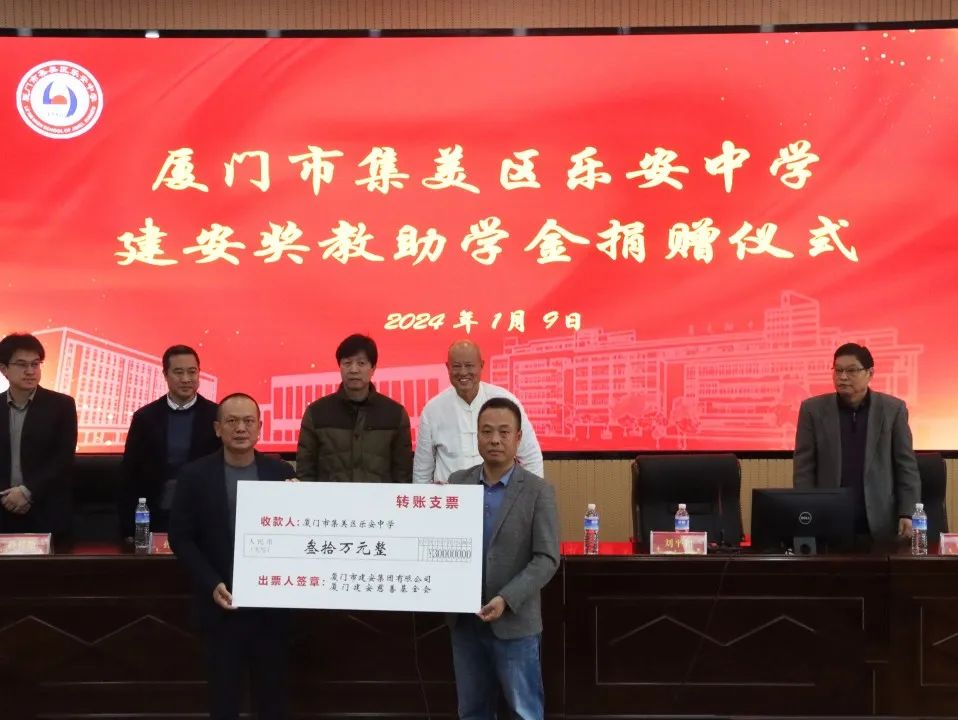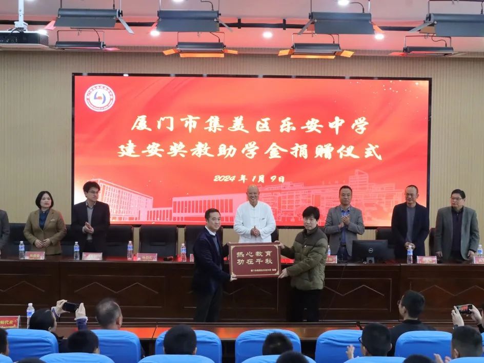 2024年1月9日,由廈門建安集團(tuán)、廈門建安慈善基金會(huì),捐資設(shè)立的“建安獎(jiǎng)教助學(xué)金”捐贈(zèng)儀式,在廈門市集美區(qū)樂安中學(xué)舉行。